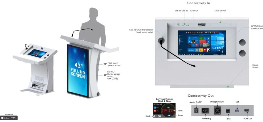 | Built-in PC for Speaker Screen | Intel Core i3, 8 GB RAM, 128 GB SSD, Windows 11 Pro |