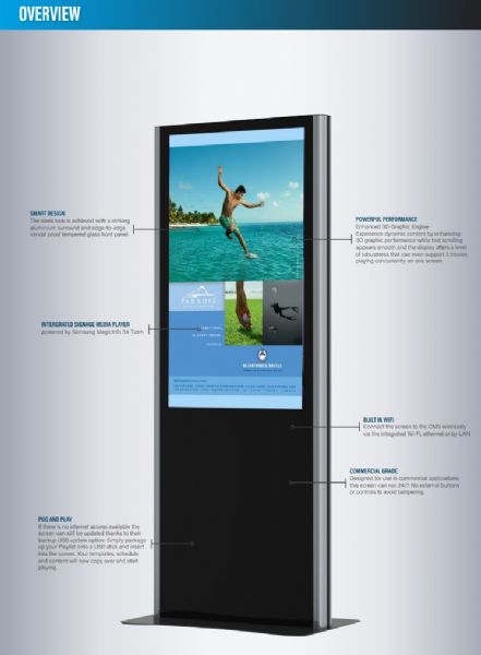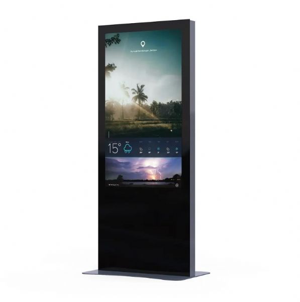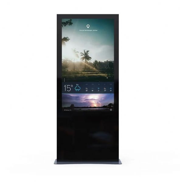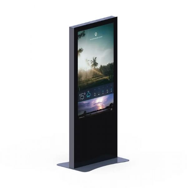 Reklam ağı için Minerra Totem. Göz alıcı alüminyum kenarlıklar, ultra ince tasarım ve uçtan uca temperli cam ön panel sayesinde şık bir görünüme sahiptir.