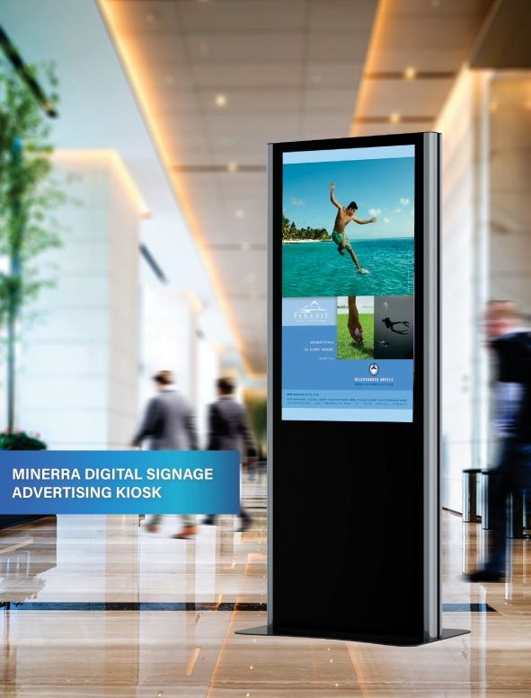 Minerra Totem yüksek çözünürlüklü parlak profesyonel ekran desteğiyle perakende mağazalar başta olmak üzere bir çok sektörde kullanılabilir