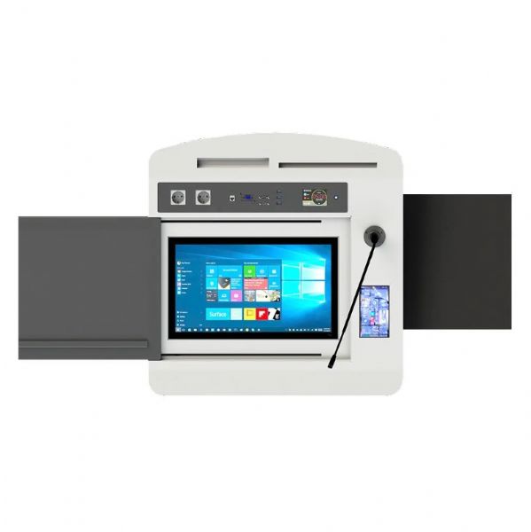 ML22T PRO, eksiksiz çözümlerle profesyonel sunum gereksinimlerinizi ve karmaşık ihtiyaçlarınızı karşılayan profesyonel bir kürsüdür. Kayar üst panel hem dokunmatik ekranınızı korur hem de belgeleriniz, dizüstü bilgisayarınız için bir platform haline getirir.