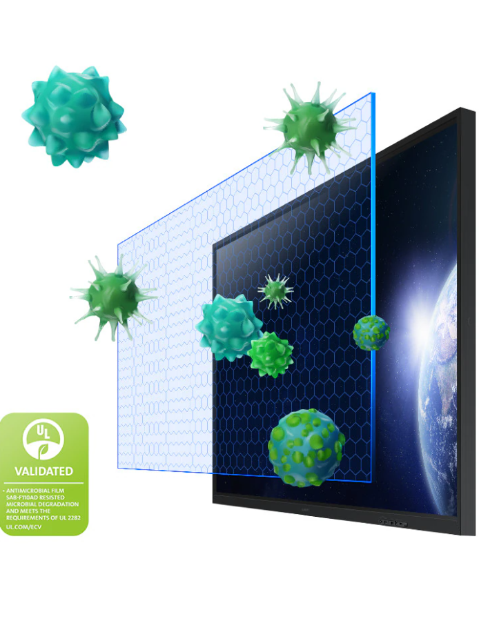 Samsung Flip 3, antimikrobiyal kaplama sayesinde belirli bakterilere karşı koruma sağlayarak mikrobiyal büyümeyi engeller. Bu sayede öğretmenler ve öğrenciler, ekrandaki içeriğe güvenle odaklanabilirler.