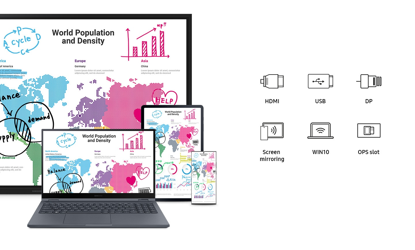 Samsung Flip’in geniş bağlantı özelliği sayesinde ekibinizle yüksek görüntü kalitesinde sunulan her türlü içerik dosyalarını paylaşabilir ve notlar alabilirsiniz.