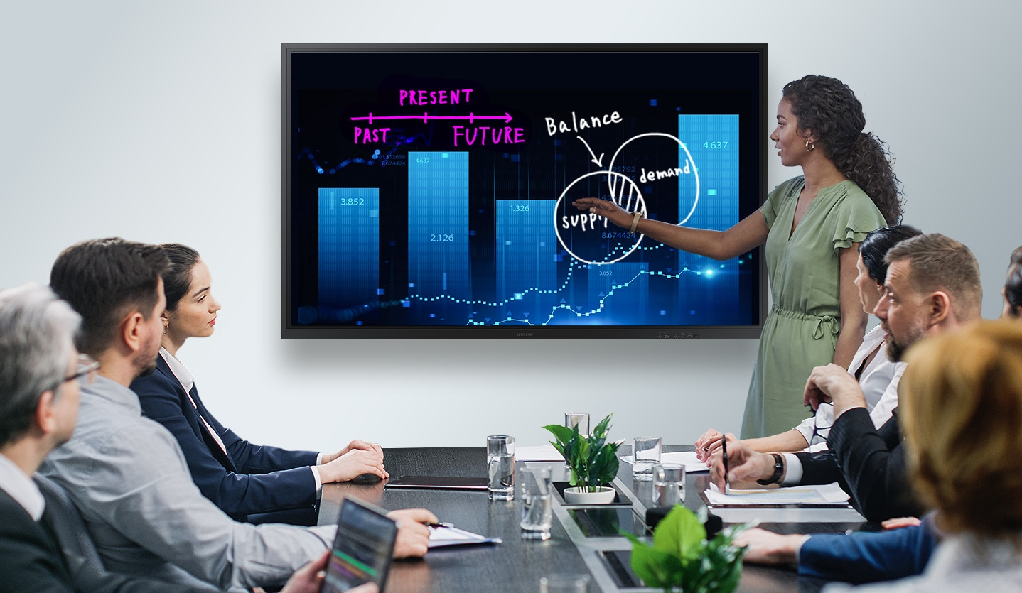 Samsung Flip , toplantı salonunda daha güçlü ve etkileyici görseller sunan, ortamdan veya kullanım koşullarından bağımsız olarak sabit ve net UHD resim Kalitesini korur.