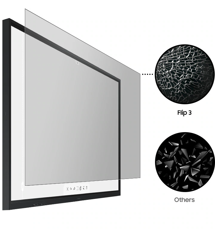 Samsung, kazaların olabileceğini bilir. Öğrencileri ve eğitimcileri korumak için Flip 3 ekranı, özel kırılmaz film ile kaplanmıştır; böylece ekran kırıldığında bile bütünlüğünü korur.