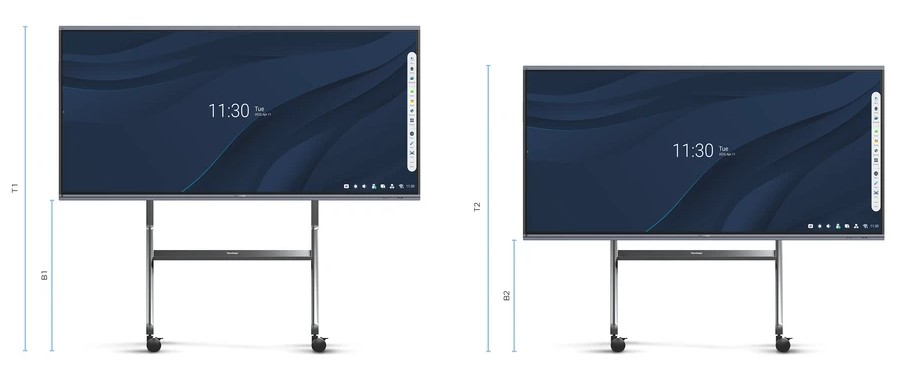 Bu taşıma arabası 55, 65, 75, 86, 98 ve 105-inç ViewBoardları taşıyabilir. Yükseklik bilgisi ViewBoard modeline göre farklılık gösterebilir.