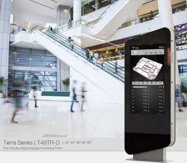 Reklam ağı için Terra Totem. Farklı ve modern tasarımı sayesinde şık bir görünüme sahiptir. Terra Totem yüksek çözünürlüklü parlak profesyonel ekran desteğiyle perakende mağazalar başta olmak üzere bir çok sektörde kullanılabilir.
